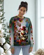 ✨ Snowman Grinch Christmas holiday sweatshirt with cozy fleece warmth, unisex fit, vibrant festive design, and eco‑certified comfort for winter wear.